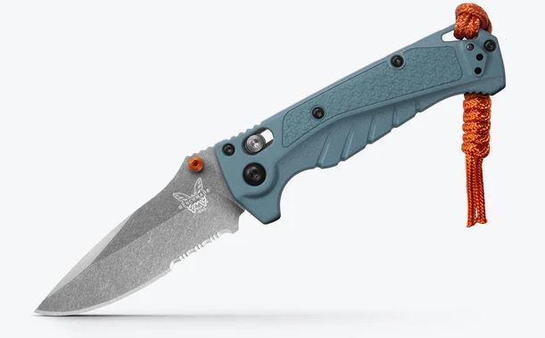 Our serrated variant of the quintessential waterman's mini folder, the versatile 18065S Mini Adira(TM)'s serrations bite into line and rope easier than without — a task that’s particularly apparent when a rope’s tension increases when wet. Featuring the same 3.0” drop-point blade made of CPM-MagnaCut stainless steel as the original, this newly serrated pocket-ready folder uses an AXIS®? lock mechanism with stainless springs for corrosion resistance, plus high-vis colored details and a useful orange lanyard for easy access. On and off the water, the 18065S Mini Adira(TM) has got your back, hard-use or EDC.