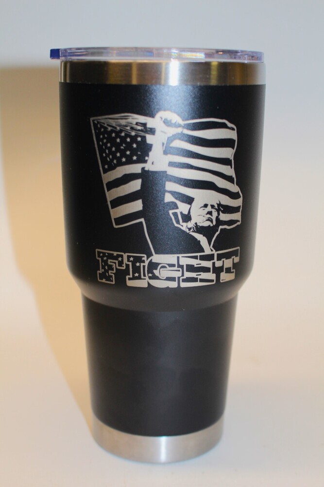 Black 32OZ Tumbler Laser Engraved Patriotic Trump Fight Flag / Trump Missed by This Much