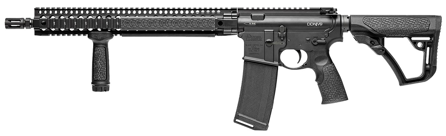 The Daniel Defense DDM4 V9 is designed to satisfy the needs of modern shooters not only in popular shooting sports but also for tactical and defensive applications. The long, 15" DDM4 quad rail over a 16" cold hammer-forged barrel with a Government profile gives the operator the option to have the support hand extended out close to the muzzle allowing them to drive the gun more precisely, and preventing over travel when transitioning between multiple targets. This combined with a mid-length gas system which is known to have a smoother recoil impulse allows for quick but precise rapid fire. The longer rail also affords the shooter plenty of real estate for optics and accessories. It also has a rugged and comfortable Daniel Defense Buttstock and Pistol Grip.