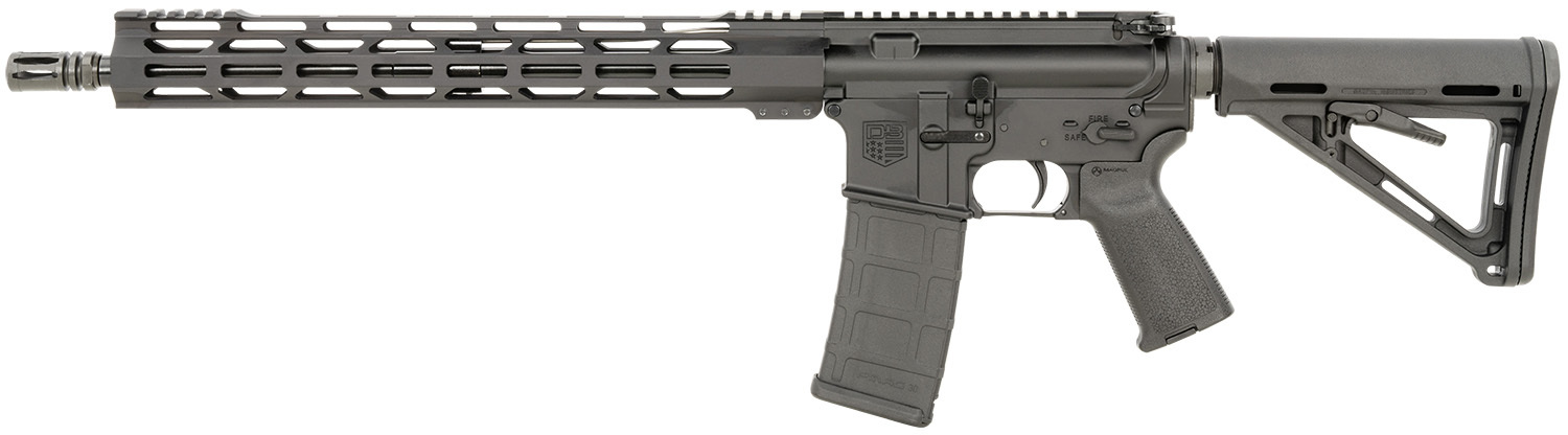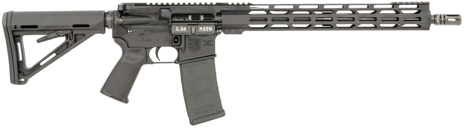 Diamondback DB15 rifle features a carbine-length, medium 4150 ChromeMoly barrel, mid-length gas system with pinned gas block, and a shot-peened Mil-Spec 8620 bolt carrier. It utilizes 7075-T6 aluminum receivers, 15" M-Lok anti-rotation handguard, Magpul MOE grip and a Magpul Carbine stock.