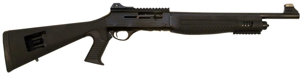 Stock: Black synthetic “TacStock 2” with vertical pistol grip and built-in 2?shell holder
