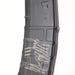 Trump Fight Flag custom laser engraved into a made in the U.S.A, the PMAG 30 AR/M4 GEN M3 is a polymer magazine for AR15/M4 compatible weapons. Similar to the MOE PMAG, the GEN M3 features a long-life USGI-spec stainless steel spring for commonality, a four-way anti-tilt follower, constant-curve internal geometry for reliable feeding, and simple tool-less disassembly for easy cleaning. The PMAG 30 GEN M3 also includes a redesigned bolt catch notch in the rear of the magazine that provides increased bolt catch clearance, while an over-travel stop on the spine helps ensure the magazine will not over-insert on compatible weapons. Low profile ribs and new, aggressive front and rear texture give positive control of the GEN M3 in all environments, and a paint pen dot matrix has been added to the bottom panel of the body to allow easy marking for identification. The new, easy to disassemble flared floorplate aids extraction and handling of the magazine while providing improved drop protection, but is slightly slimmer than before for better compatibility with tight double and triple magazine pouches.