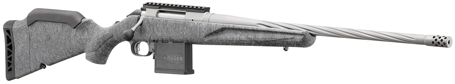 The Ruger American Gen II applied Cerakote coating on the barrel, muzzle brake, receiver and bolt handle results in a durable, easy-to-maintain finish. The stock provides excellent grip without being too sharp or abrasive. A soft rubber recoil pad features a large radius on the heel for easy shouldering and improved geometry that progressively collapses to reduce felt recoil. Installed low comb improves sight alignment when using magnified optics but can be removed when utilizing low-mounted sights. The medium contour barrel features deep spiral flutes that reduce weight at the muzzle end of the barrel to improve balance without sacrificing stiffness or accuracy. Intuitive three-position tang safety locks the bolt, preventing inadvertent bolt opening while allowing the rifle to be loaded with the safety engaged. Includes one magazine; steel sling swivel studs.