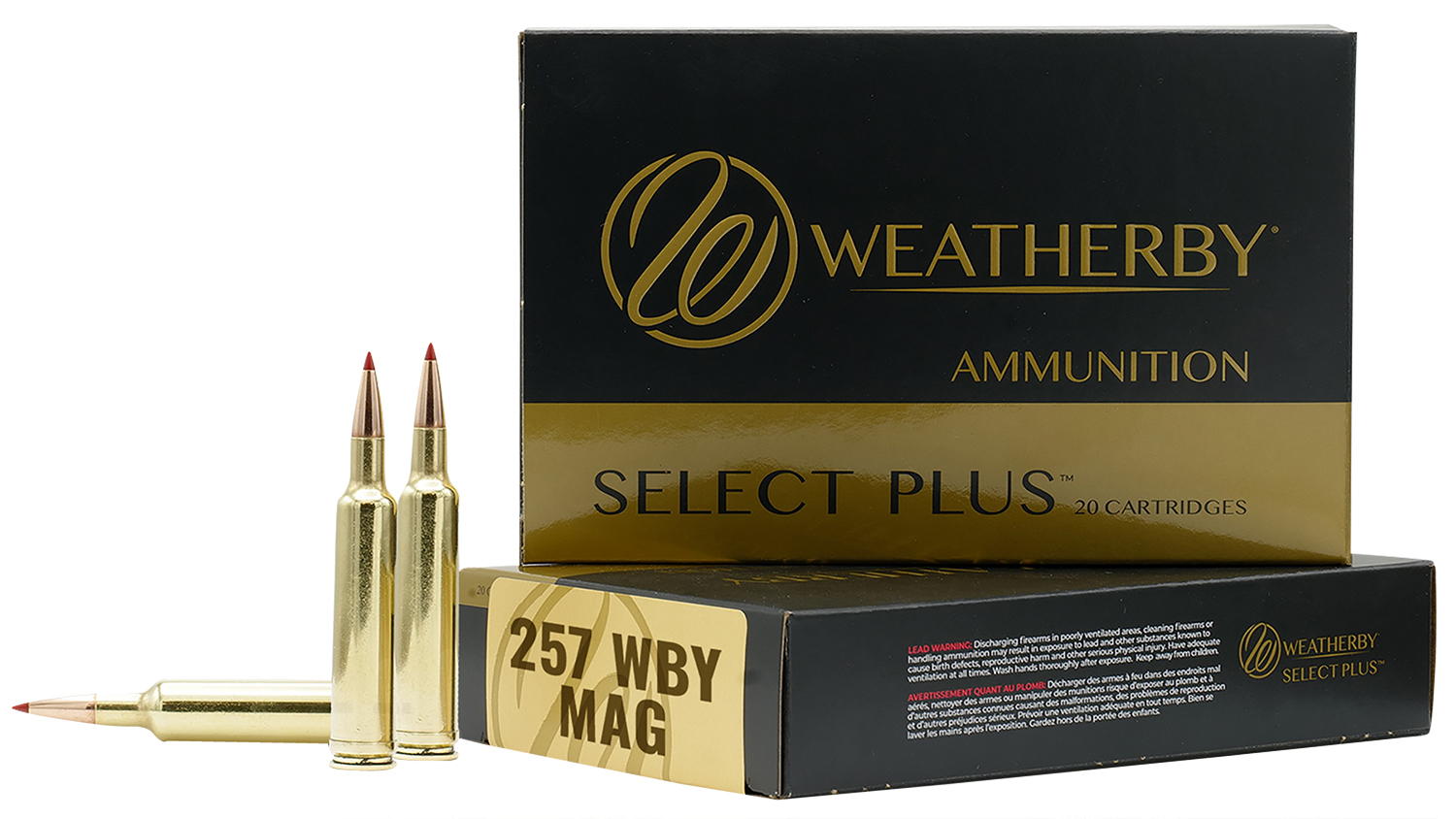 Weatherby Select Plus with the ultimate in speed, power and velocity. It's the flattest shooting, hardest hitting, most accurate ammo you can buy. It pairs our magnum design with the most popular bullet offerings from Barnes, Hornady, Swift, Berger and Nosler. With Select Plus there's a bullet option to meet every hunting or shooting situation.